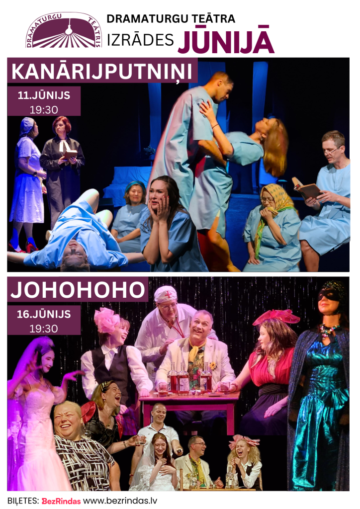 Vasara klāt, visiem prāts jau grozās ap līgošanu, tāpēc “neapgrūtināsim” mūsu teātra draugus un tikai mēneša pirmajā pusē dodam iespēju noskatīties divas pretēja rakstura izrādes.